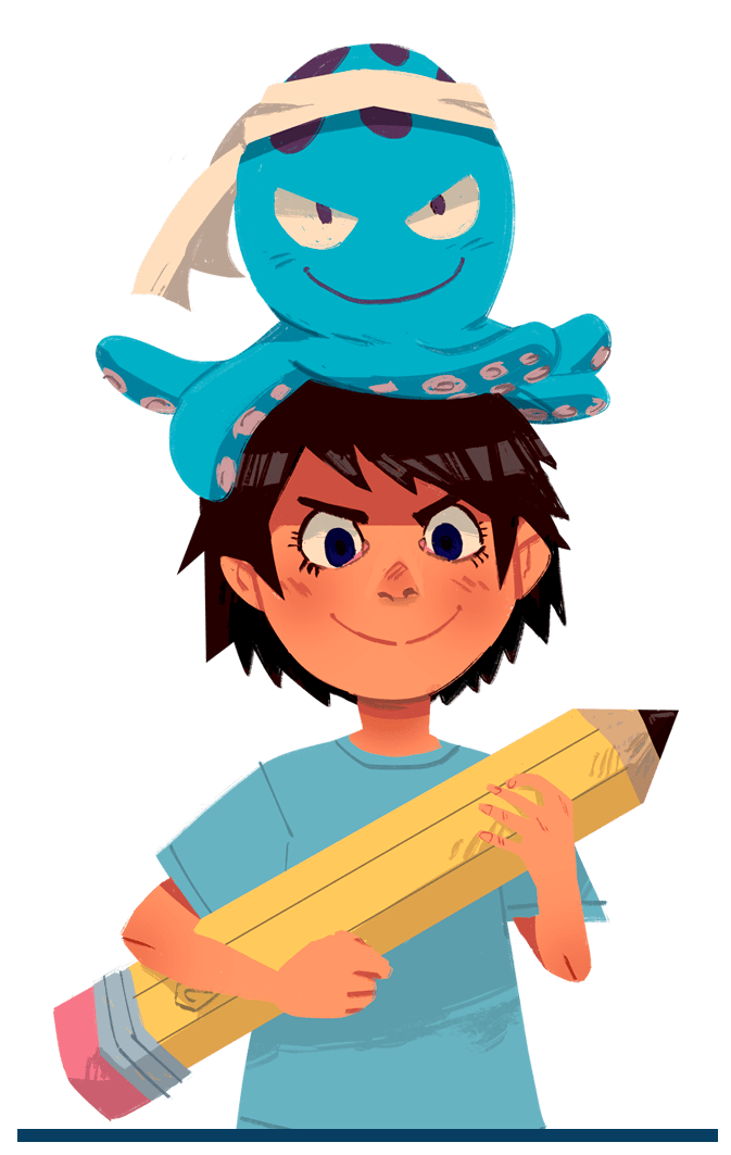 ¡No puede quedarse quieto! Le gusta dibujar tanto como a todos nuestros autores y siempre se la pasa creando nuevas historias. Al tener 8 tentáculos, puede dibujar, entintar, comer y checar su celular, todo al mismo tiempo. Intenta fomentar una filosofía de vida, en la cual, puedes hacer y tienes tiempo para todo...